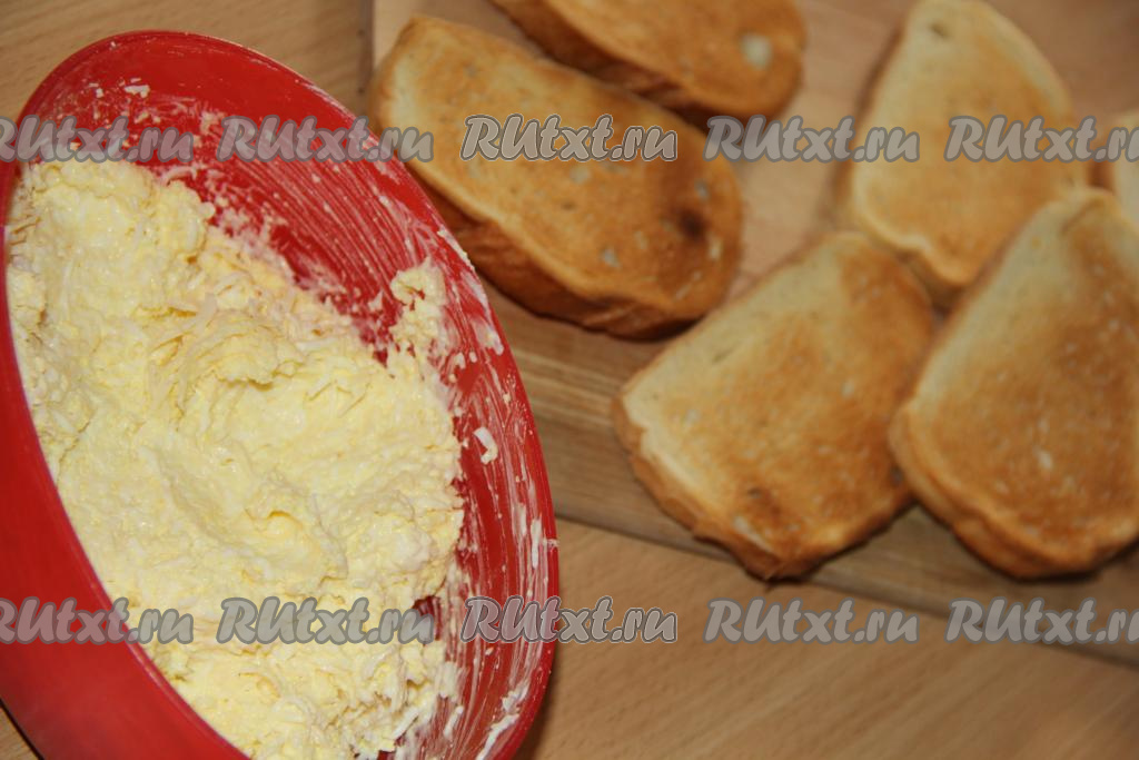 Намазать хлеб смесью яиц и майонеза.