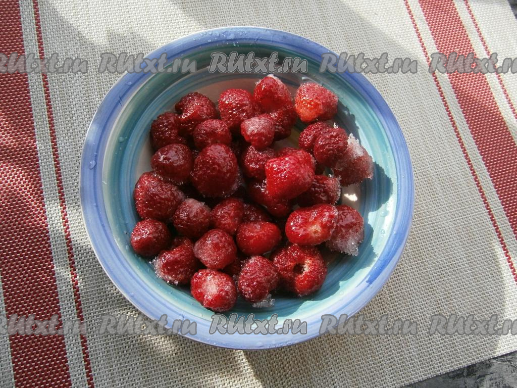 Клубнику протушить на небольшом огне, помешивая, около 2-3 минут (до полного размораживания). Крахмал развести в двух столовых ложках холодной воды.
