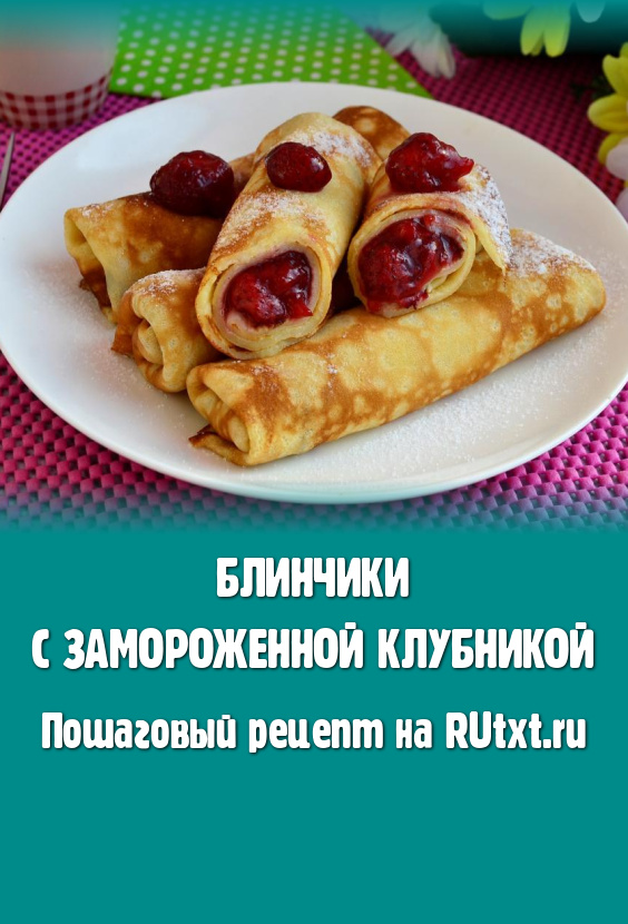 Невероятно вкусные и ароматные блинчики, приготовленные с начинкой из замороженной клубники, подать к столу, посыпав немного, по желанию, сверху сахарной пудрой.