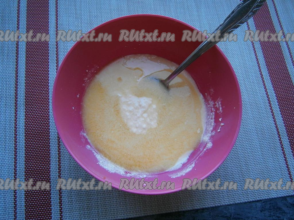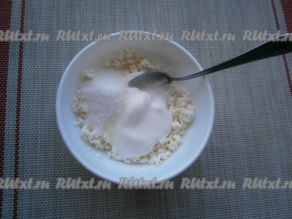 Приготовить покрытие (глазурь): в творог добавить сметану и сахар.