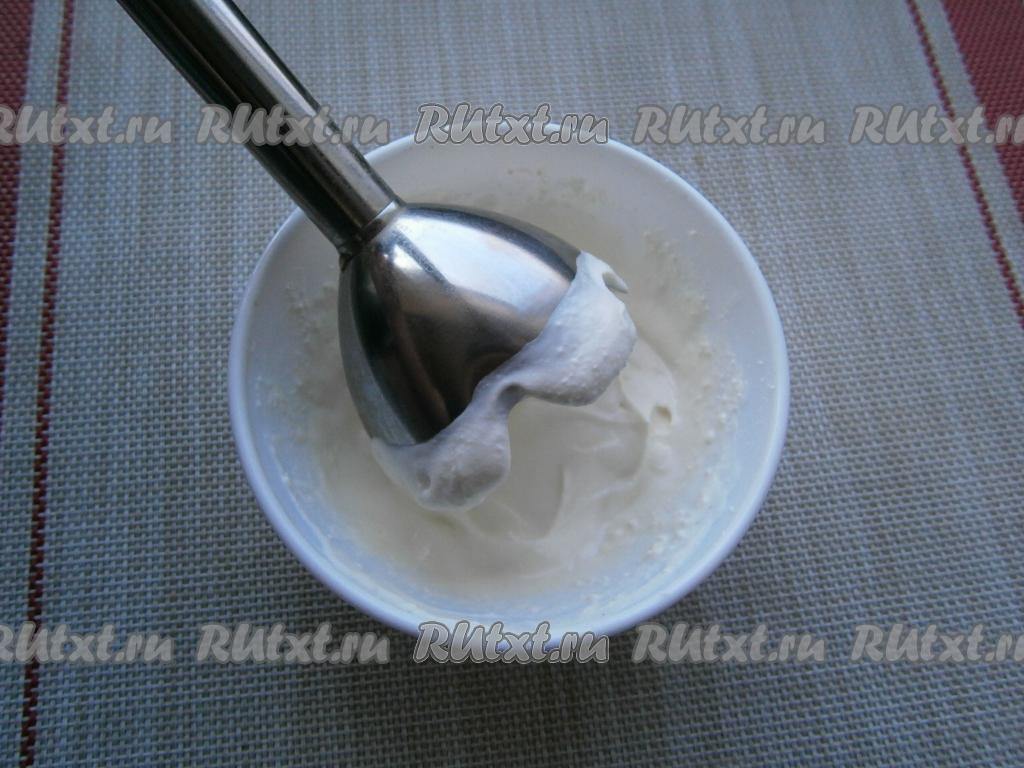 Взбить погружным блендером на высокой скорости. Должна получиться гладкая, не густая, однородная смесь.
