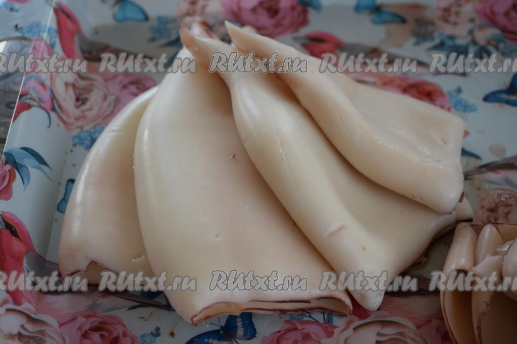 Вынимаем кальмаров и опускаем в холодную воду. Снимаем с тушек тонкую плотную плёночку и промываем. Наши кальмары готовы к дальнейшему приготовлению.