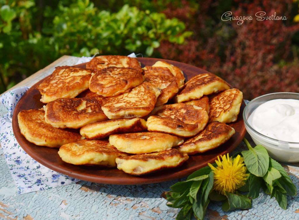 Разогреваем сковороду с растительным маслом, делаем огонь средним и выкладываем тесто при помощи столовой ложки, приминая и разравнивая комочки теста.