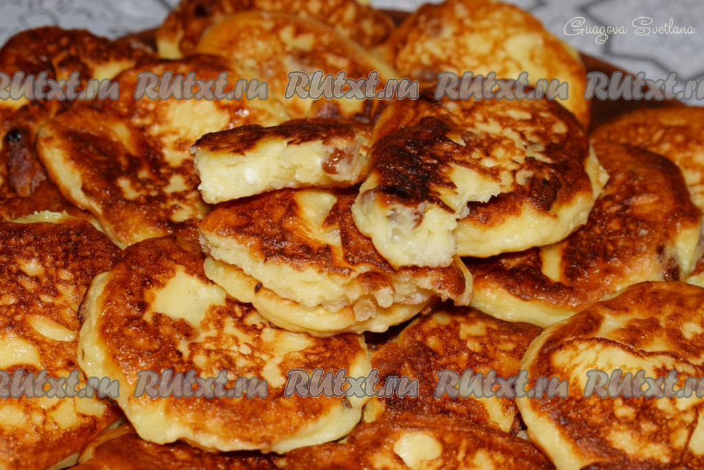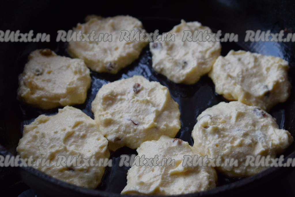 Готовые сырники с изюмом снимаем со сковороды и выкладываем на тарелку. Аналогично жарим все сырники с изюмом из оставшегося творожного теста и подаём к столу. Сырники получаются мягкими, нежными, они чудесно пахнут творогом и ванилином.