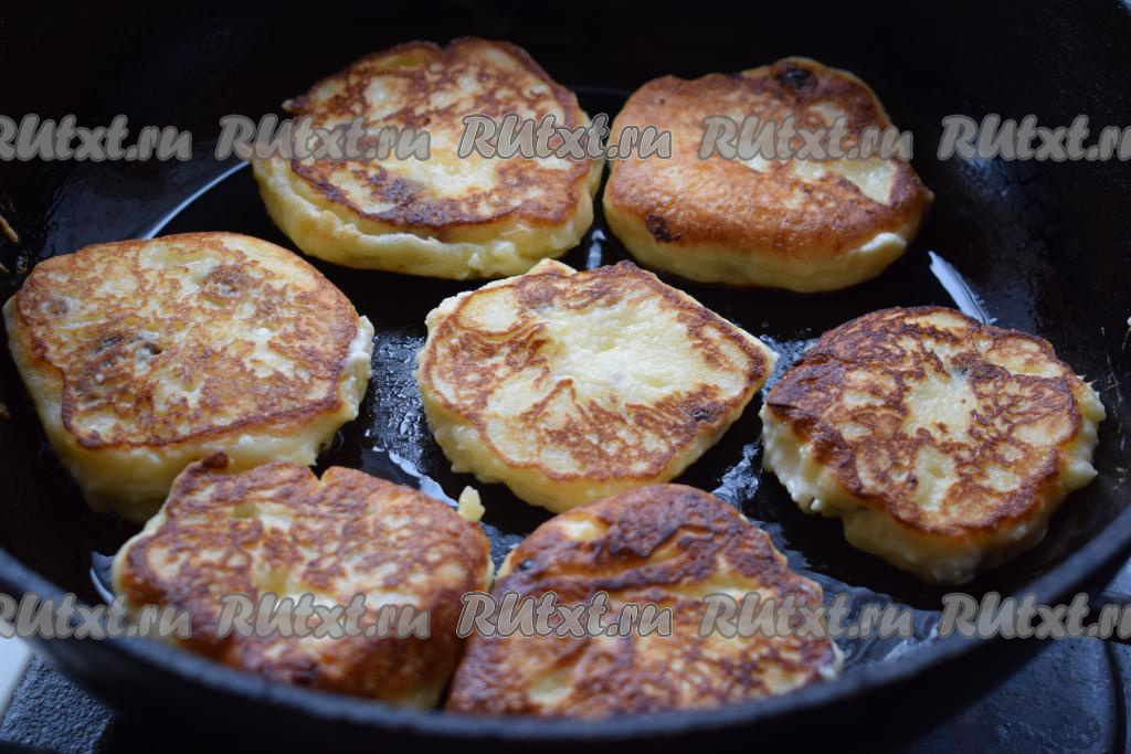 Жарим наши сырники на среднем огне до образования румяной корочки с двух сторон (минут по 6-7 с каждой стороны).