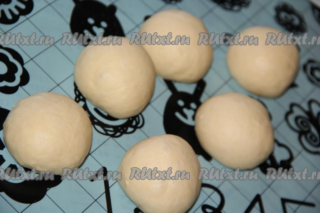 Разделить тесто на 12 шариков весом, примерно, по 70 грамм.