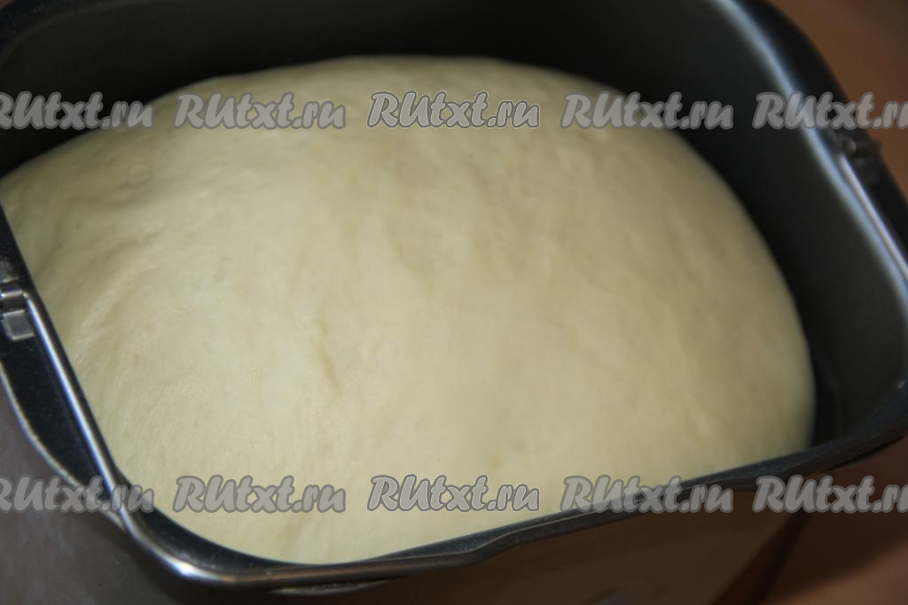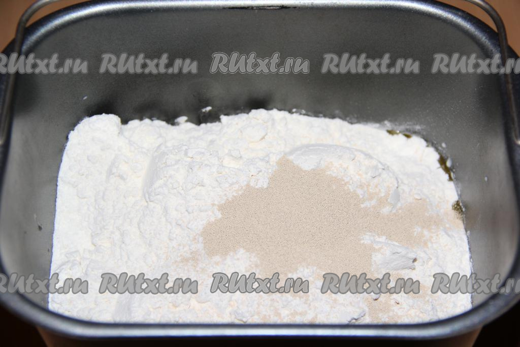 Добавить муку и сухие дрожжи, выставить режим хлебопечки "Замес теста" (в моей хлебопечке он длится 1,5 часа).