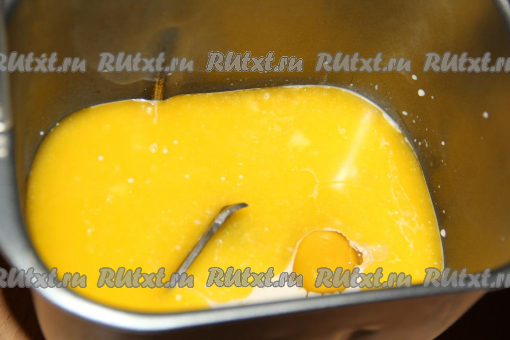 Сливочное масло растопить. Растительное и тёплое сливочное масло влить в ведёрко хлебопечки.