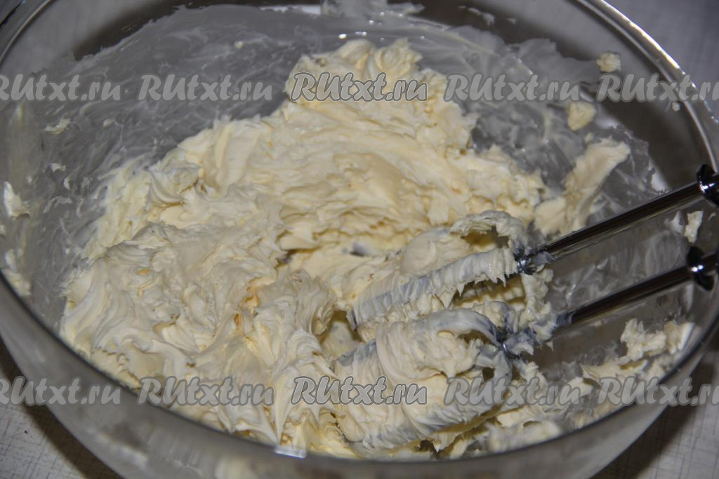 Сливочное масло заранее достать и дать полежать при комнатной температуре. Взбить миксером мягкое сливочное масло в течение 2 минут.
