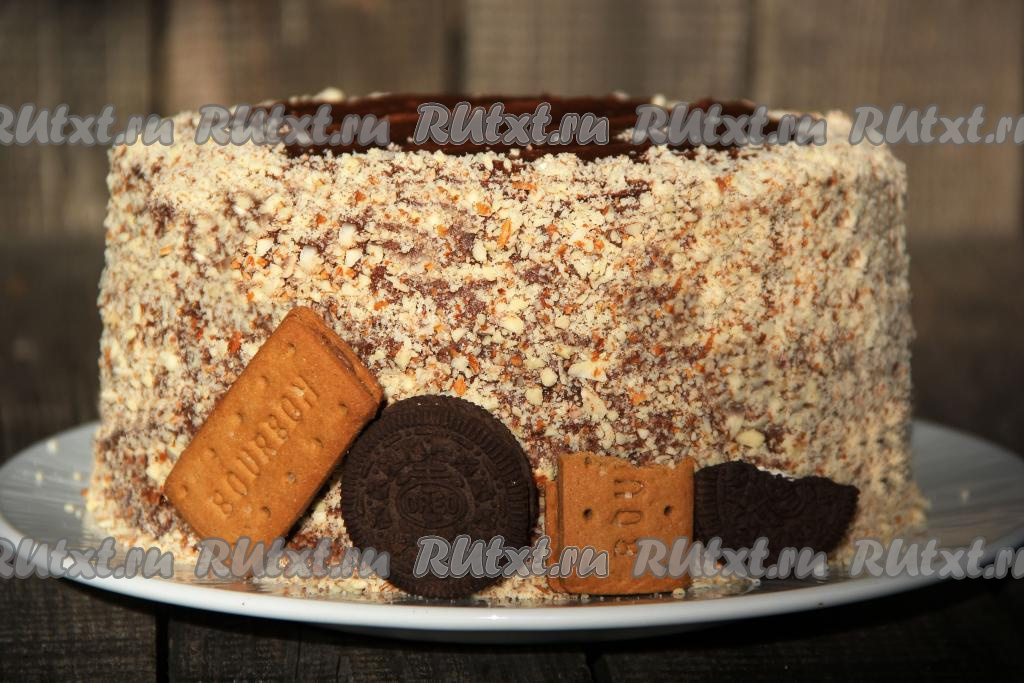 В принципе, наивкуснейший торт "Прекрасная маркиза" готов, я дополнительно бока обсыпала ореховой крошкой и украсила печеньками.