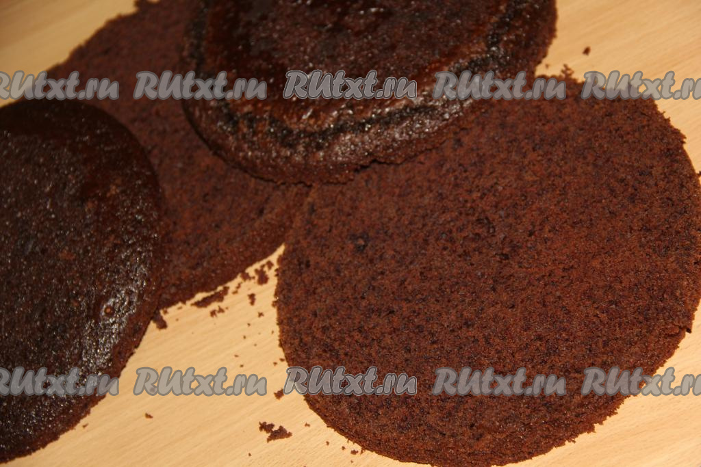 Коржи разрезать на две части. У нас получится 4 коржа.