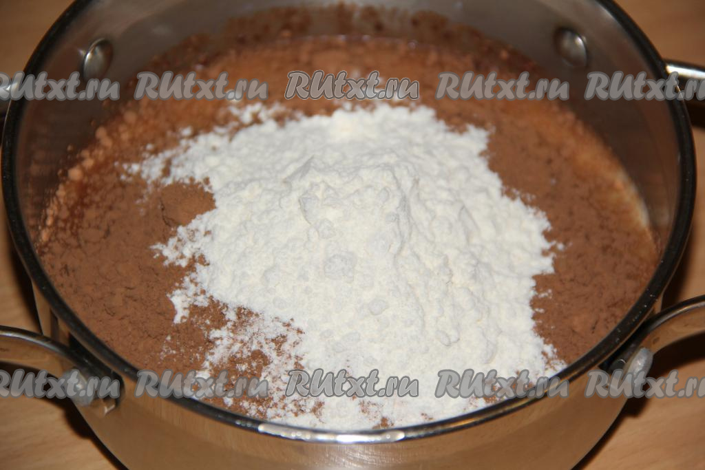 В смесь сухих ингредиентов влить получившуюся молочно-масляную смесь.