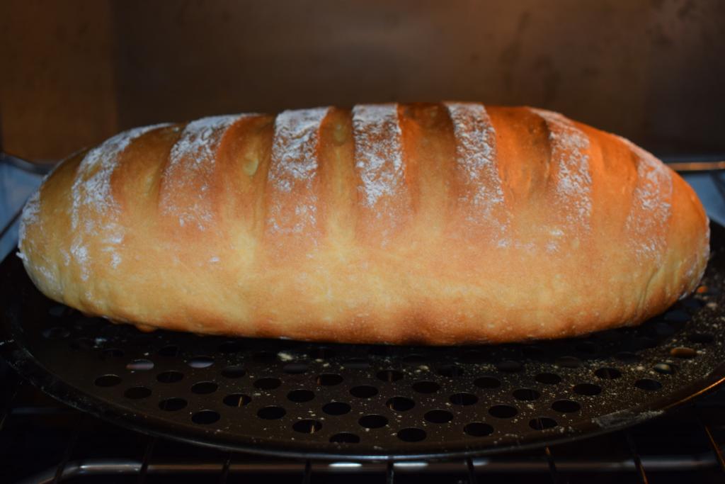 Подошедший батон отправляем в разогретую духовку и выпекаем при температуре 190 градусов 35 минут.