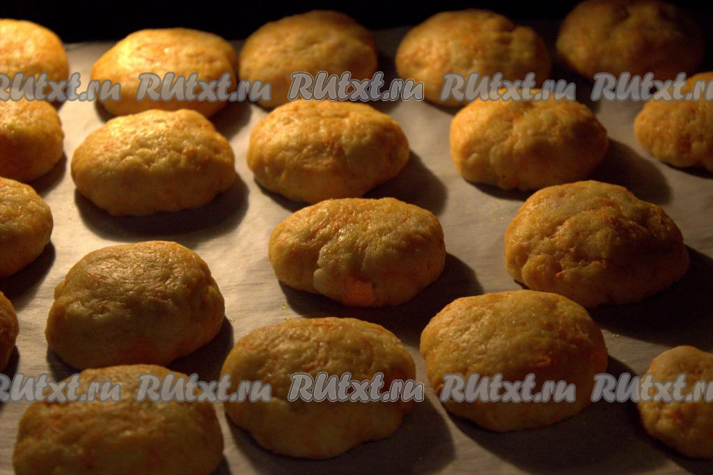 Из морковного теста сформировать шарики, размер которых должен быть немного больше грецкого ореха (у меня получилось 25 штук). На противень, предварительно застеленный пергаментной бумагой, выложить подготовленные шарики на расстоянии друг от друга.