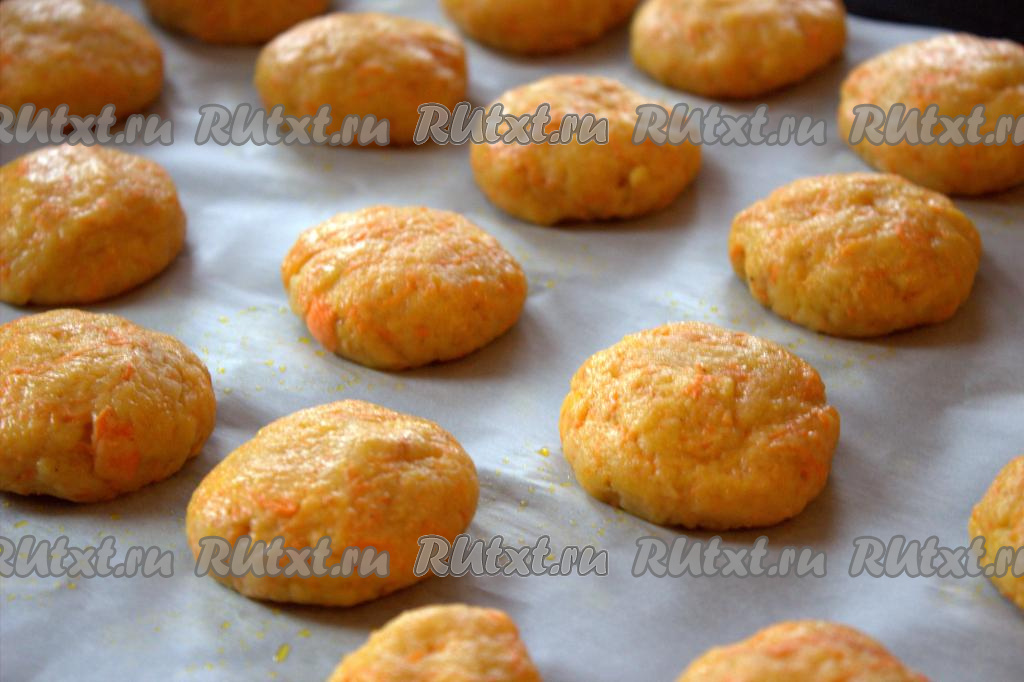 Выпекать морковное печенье в духовке, заранее разогретой до 180 градусов, минут 20-25 (до появления золотистого оттенка). Продолжительность выпечки зависит от размера печенья.