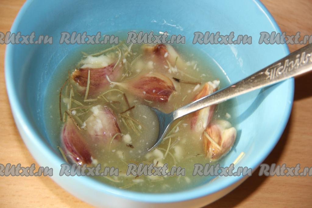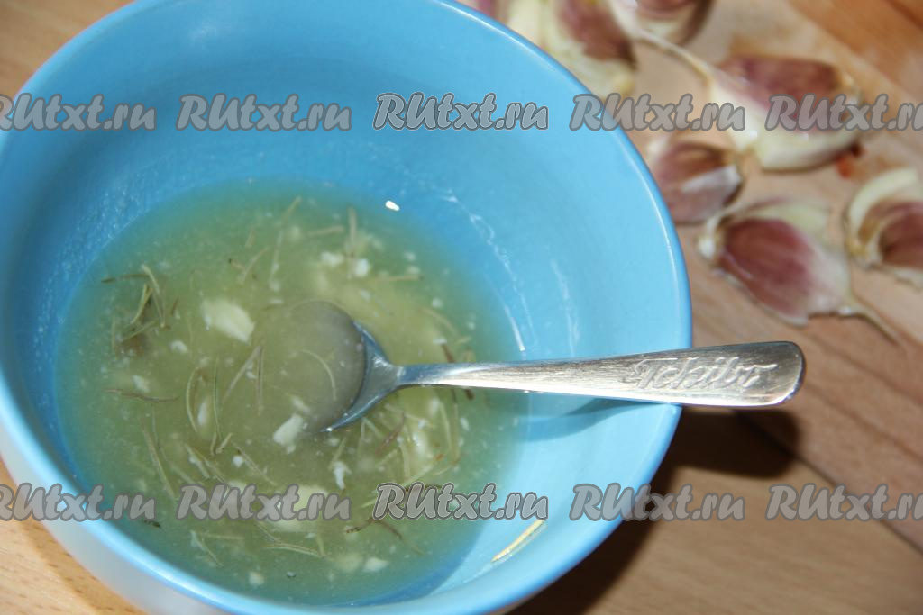 Пока запекается картофель, приготовим маринад, для этого в миске нужно соединить 1 столовую ложку уксуса 9%, 6 столовых ложек растительного масла, 20 грамм растопленного не горячего сливочного масла, 1 чайную ложку соли, по желанию, можно добавить любые душистые травы, хорошо перемешать.