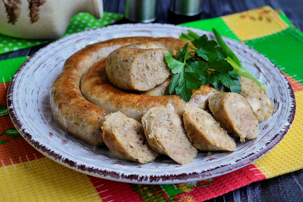 К любому празднику, а особенно к Рождеству или Пасхе, предлагаю приготовить в домашних условиях колбасу из курицы и свинины. Никакая магазинная колбаска не сравнится с домашней, поэтому, если есть возможность, готовить её нужно самим дома. Колбаса получается необычайно вкусной и сочной! Кишки для приготовления колбасы можно приобрести в супермаркетах или в специализированных интернет-магазинах.