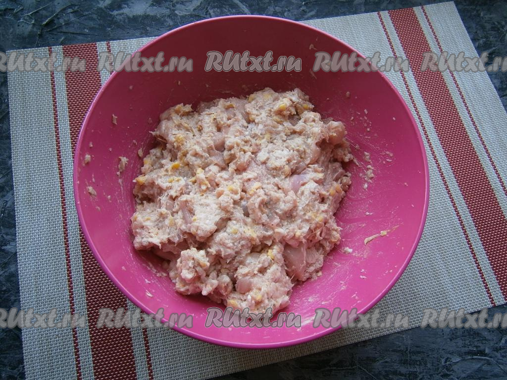 Очень тщательно фарш перемешать.