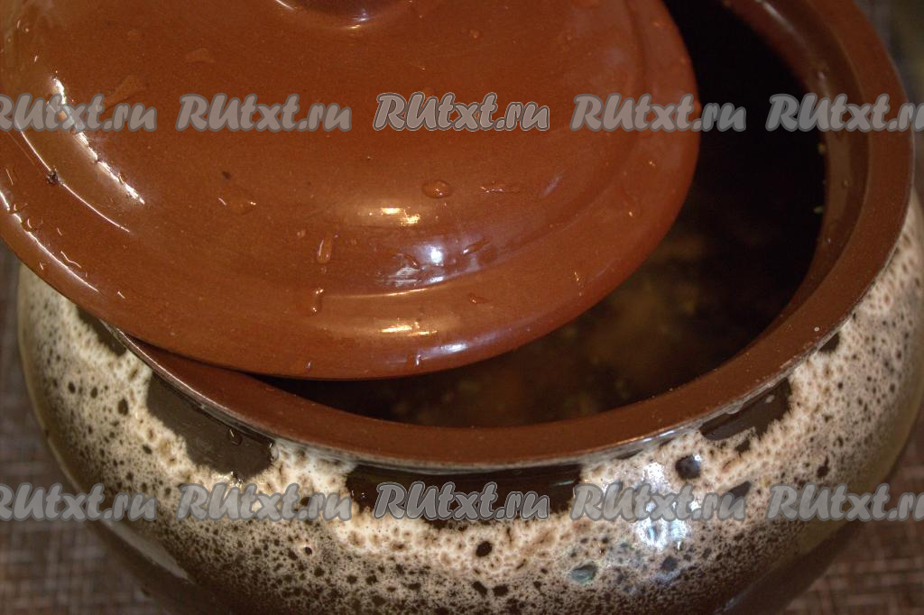 Накрыть горшочки крышкой и поставить в разогретую до 180 градусов духовку на 40 минут (до полного испарения жидкости).