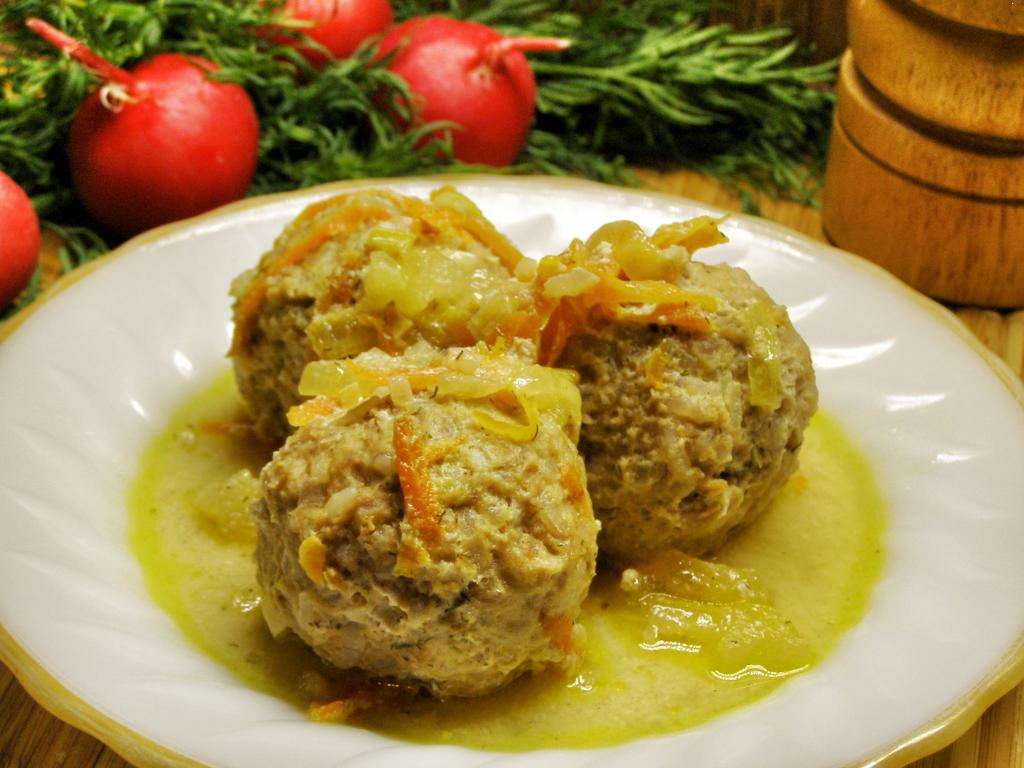 По истечении времени снимаем кастрюлю с огня. Сочные, вкусные тефтели с рисом подаём в горячем виде, полив нежнейшим сметанным соусом, и дополнив овощным гарниром (например, картофельным пюре), гречкой, рисом или лёгким салатиком.