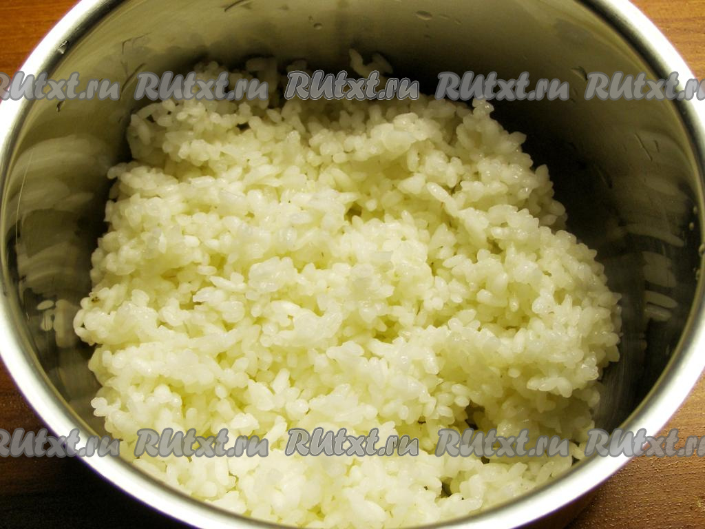 Вначале приготовим фарш для тефтелей, для этого рис выкладываем в кипящую подсоленную воду (1 чайная ложка соли на 1 литр воды) и отвариваем до полуготовности, то есть рисовые зёрнышки на вкус должны быть снаружи мягкими, а внутри - твёрдыми. Сливаем воду через дуршлаг, но рис не промываем. Оставляем немного остыть.