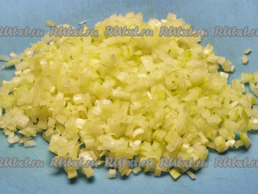 Очищаем одну луковицу и очень мелко нарезаем (можно натереть на тёрке или измельчить в мясорубке или блендере).