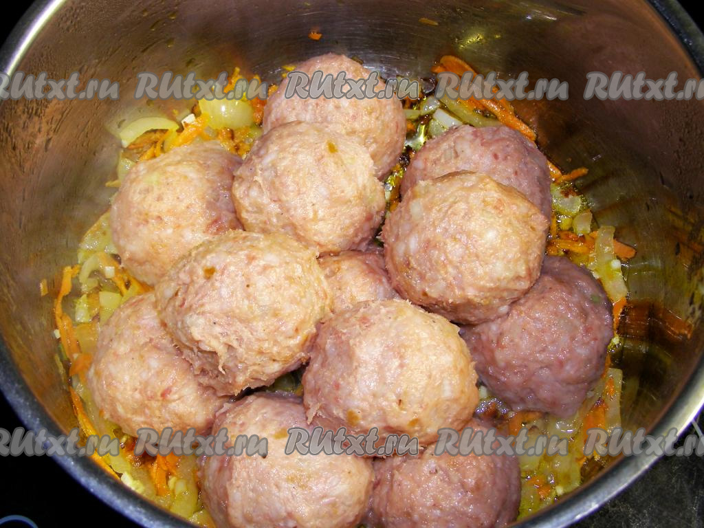 Не снимая кастрюлю с огня, выкладываем в неё тефтели.