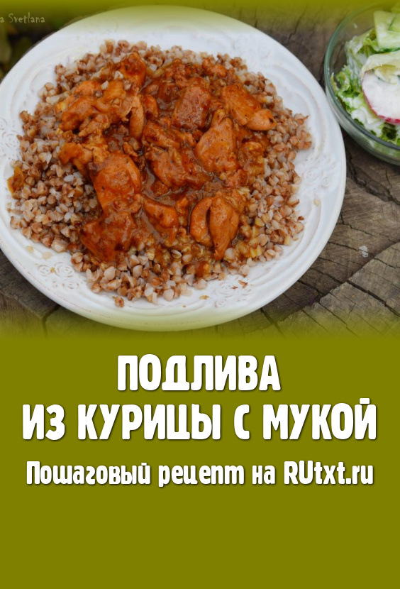 По прошествии времени выключаем огонь, наша вкусная и ароматная подлива из курицы с мукой готова, подаём её горячей к гречке, макаронам, рису, пюре или отварному картофелю. Такое блюдо прекрасно разнообразит привычный рацион, готовится просто и по ингредиентом очень бюджетно, что делает его частым гостем на нашем столе. Попробуйте и вы приготовить эту замечательную подливу!