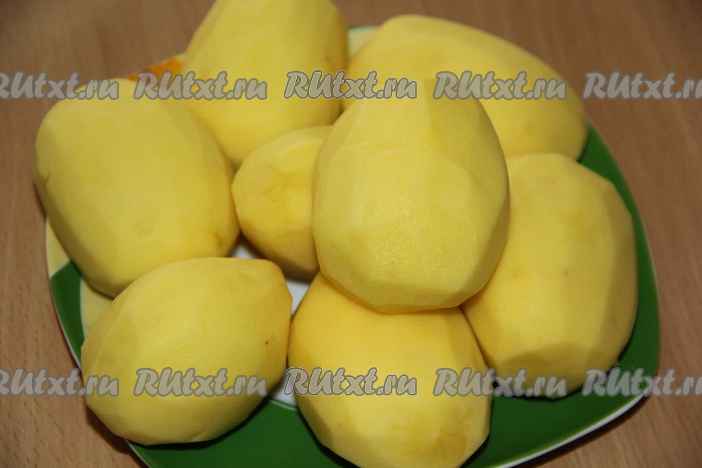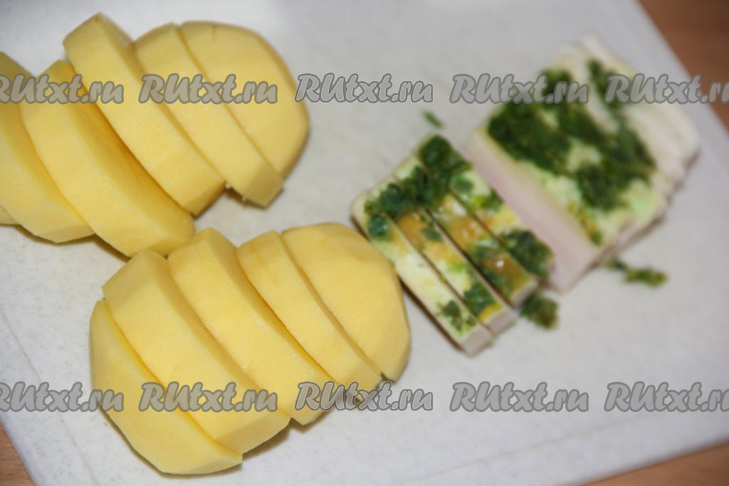 Сало нарезать на пластинки. Картофель разрезать на кружочки толщиной, примерно, 0,5 см.