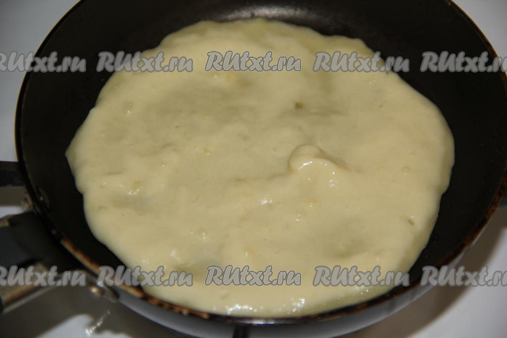 Сковороду (я выпекала картофельные лепёшки на сковороде диаметром 10 см) смазать растительным маслом, разогреть, выложить 2 столовые ложки теста и распределить равномерно по всей поверхности сковороды.