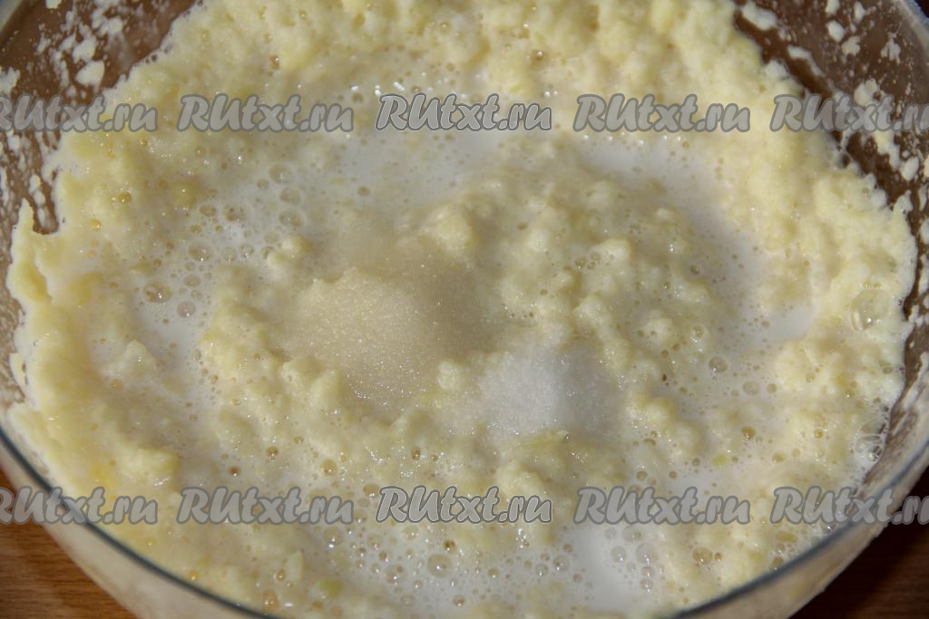 Растолочь картофель со сливками, добавить соль и сахар.