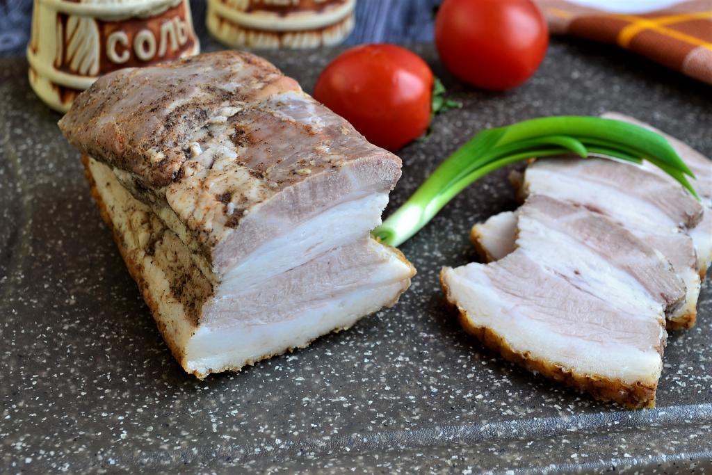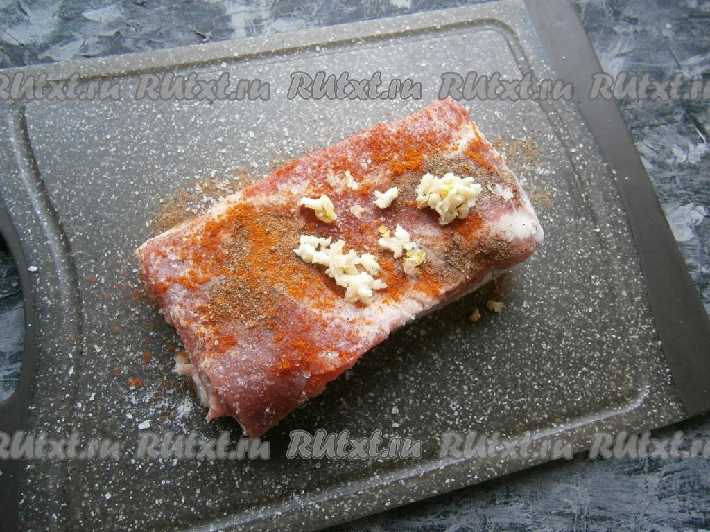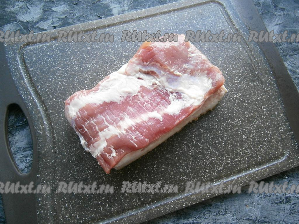Сало вымыть, поскоблить шкуру, обсушить бумажными полотенцами.