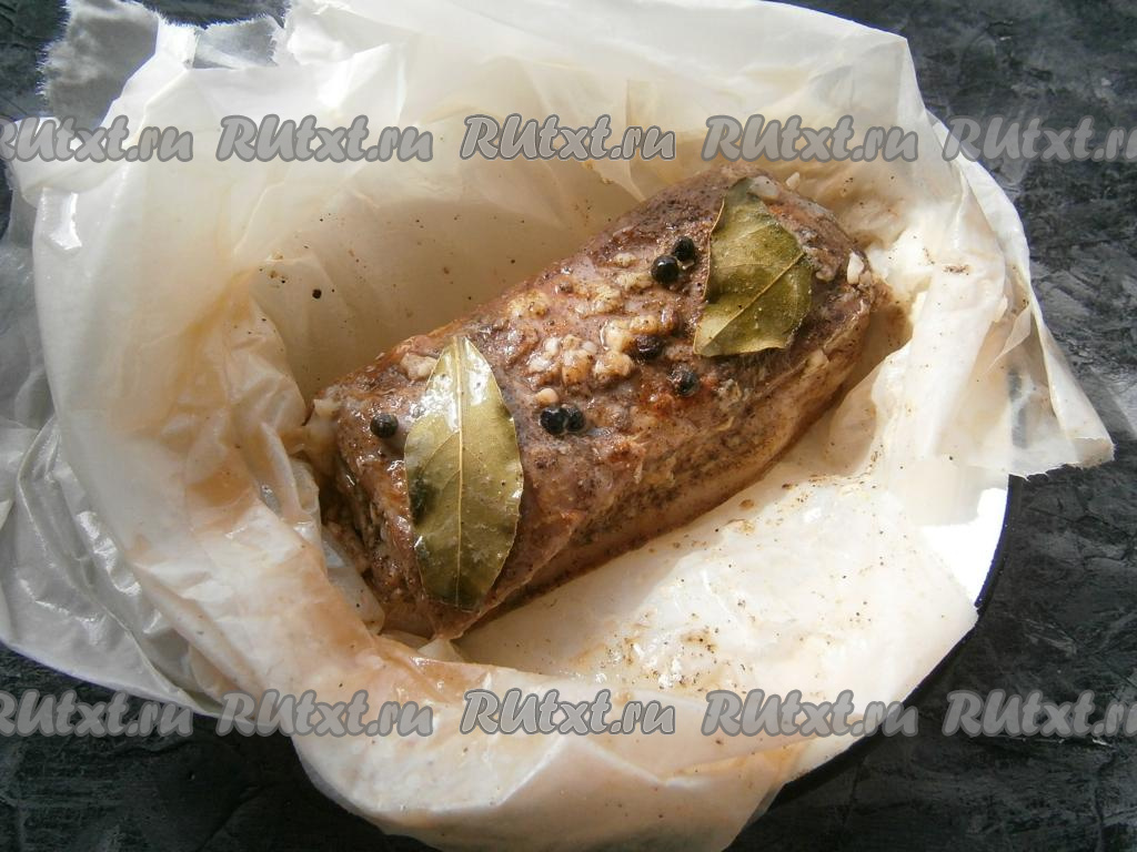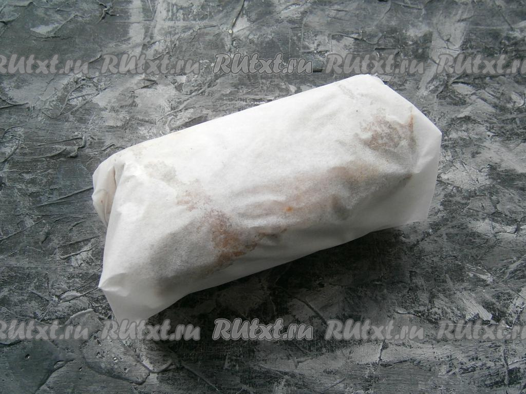 Теперь завернуть сало в чистый лист пергамента и поместить в холодильник на 5-6 часов.