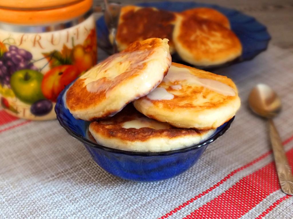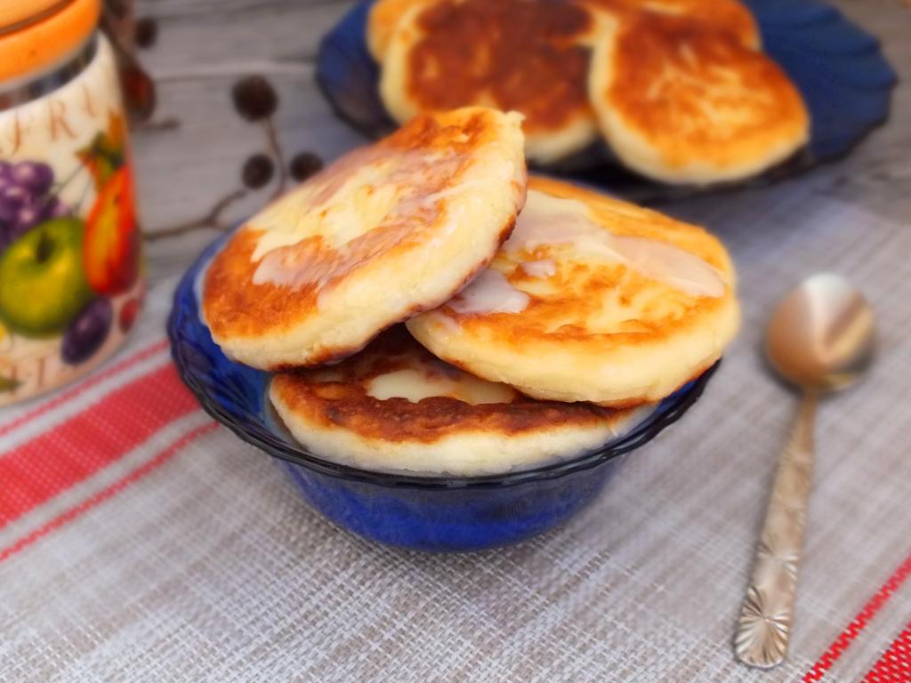 Готовые сырники переложите на блюдо. Аналогично сформируйте и пожарьте оставшиеся сырники. К столу подавайте горячими.