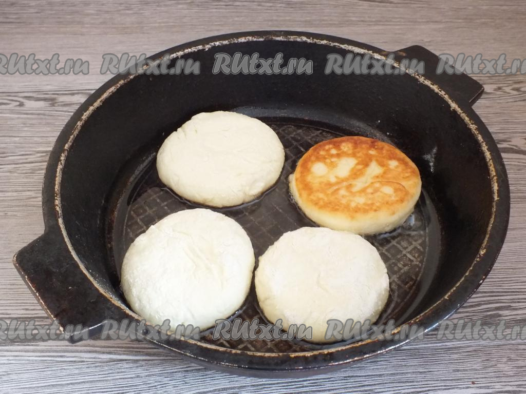 Разогрейте в сковороде растительное масло, убавьте огонь до чуть ниже среднего. Выложите подготовленные сырники. Мне было удобно обжаривать по 4 штуки за раз. Вы ориентируйтесь на свою сковороду. Каждый сырник необходимо обжарить по 5 минут с каждой стороны (до красивого румяного цвета). Если сырники подгорают, убавьте огонь.