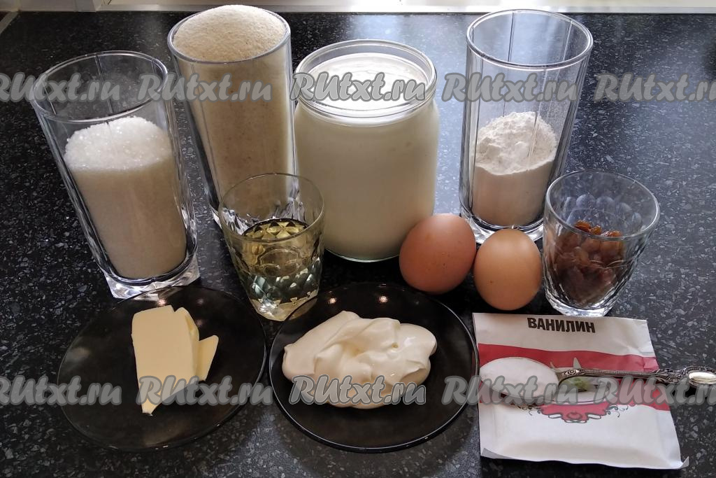Для приготовления манника на кефире с майонезом вам потребуются: