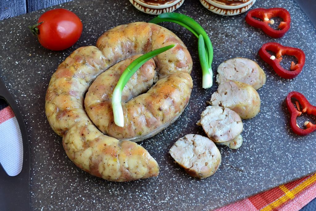 Запекать домашнюю колбаску в разогретой до 180 градусов духовке около 1 часа.