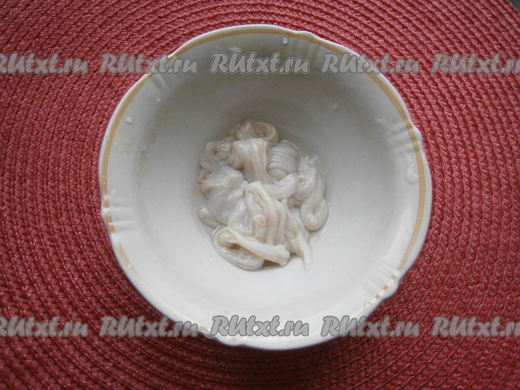 Свиные кишки предварительно замочить в воде с добавлением уксуса 9% (или лимонного сока) на 1 час, после чего промыть их под проточной водой, надев на гусак крана одну сторону кишки.