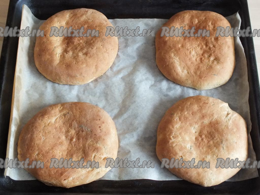 Готовые лепёшки достаньте из духовки. Они имеют равномерную, красивую, румяную корочку.
