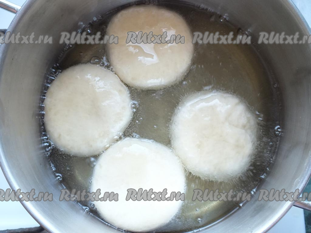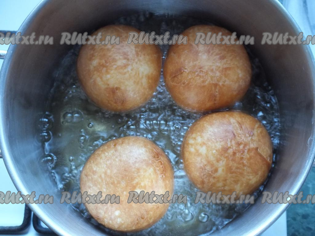 Готовую выпечку выкладывайте на блюдо, застеленное бумажной салфеткой, чтобы удалить излишки жира. Таким образом приготовьте все кусочки теста в разогретом масле.