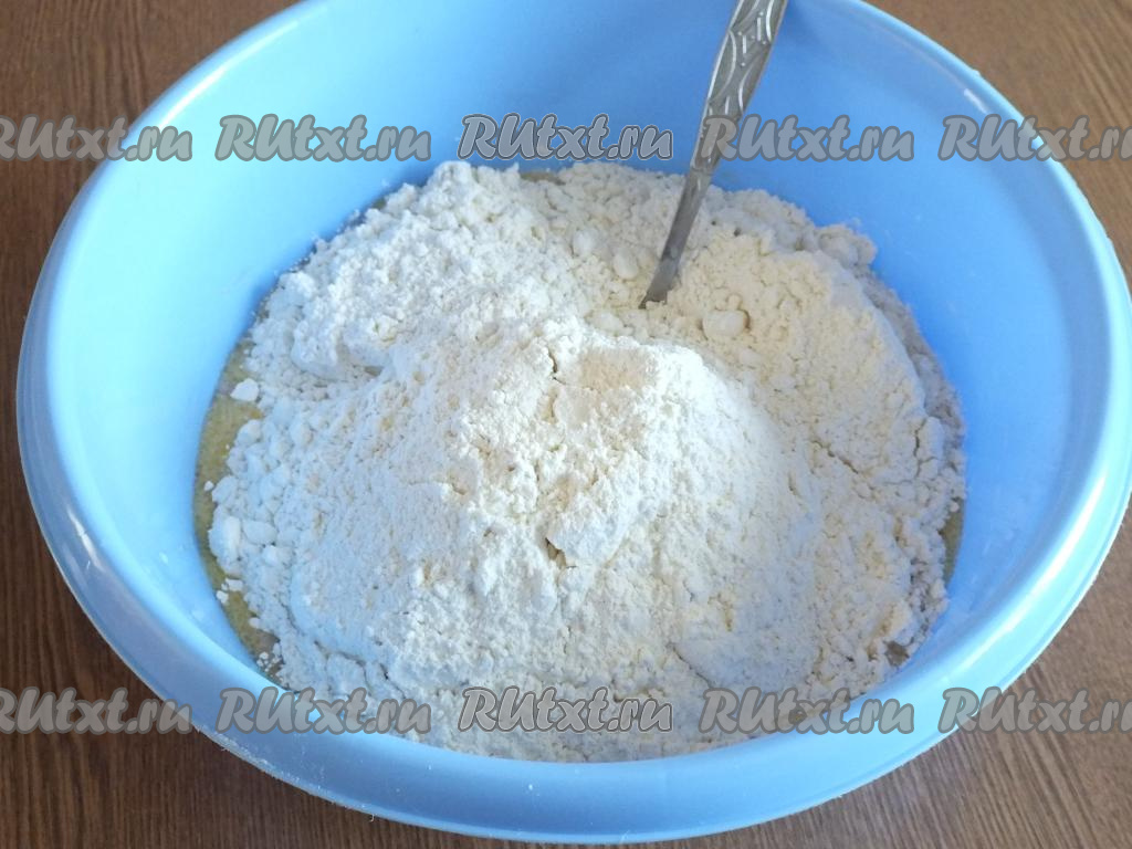 Начните замес ложкой. Как только тесто станет трудно перемешивать, смажьте руки 2 столовыми ложками растительного масла и вымешивайте руками, подсыпая частями оставшуюся муку (её может уйти больше или меньше, но придерживайтесь указанного количества).