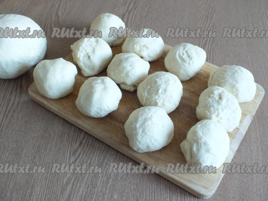 Далее поделите тесто на 17-18 частей, в среднем вес одной заготовки 80 грамм. Выложите на доску.