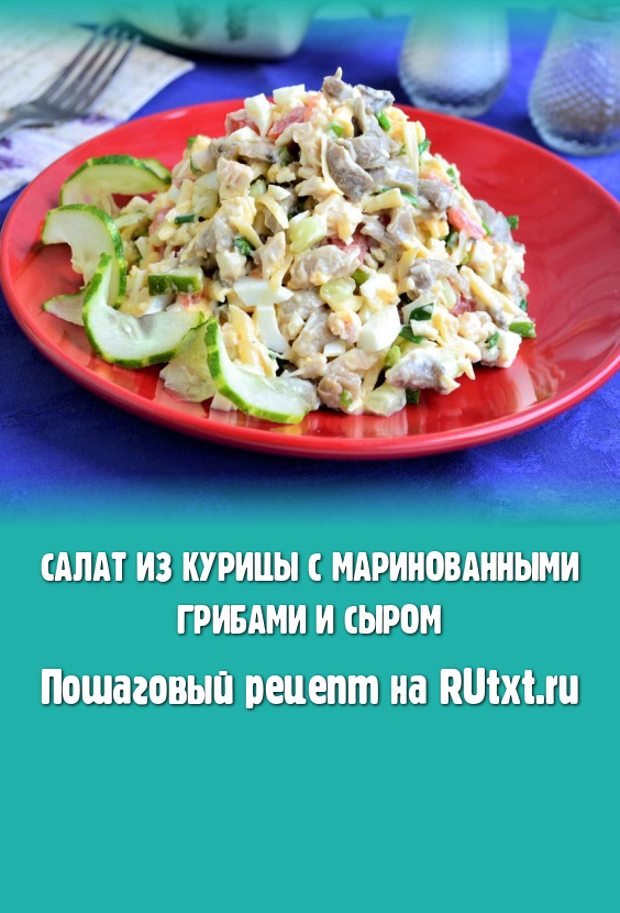 Всевозможные салаты безумно любят в моей семье, поэтому готовлю я их часто, а рецептами самых удачных делюсь с вами. Предлагаю попробовать очень вкусный салат, приготовленный из курицы с маринованными грибами и сыром. Это блюдо будет уместно и на семейном ужине, и на праздничном столе. Я использовала маринованные вешенки, можете их заменить на маринованные шампиньоны или на любые другие маринованные грибочки.