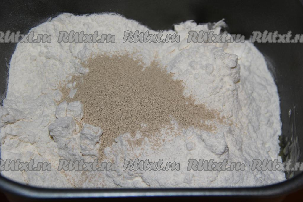 Добавить муку, соль и дрожжи, крышку хлебопечки закрыть и выставить режим "Замес теста" (в моей хлебопечке на замес теста для кулича потребовалось 1,5 часа).