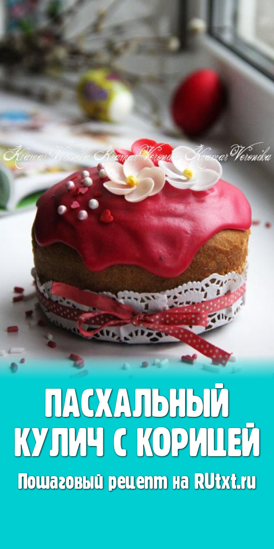 На Пасху готовила кулич с корицей. Пасхальный кулич получился вкусным, с мелкопористым мякишем и, конечно, ароматным, он не крошился при разрезании. В качестве добавки можно использовать орехи, изюм, сухофрукты. Украсить кулич можно любой глазурью (например, белковой или сахарной, а я украсила ягодной глазурью). Замес теста для кулича можно сделать в хлебопечке или вручную. Уверена, вкус и аромат пасхального кулича, приготовленного по этому рецепту, понравится многим!