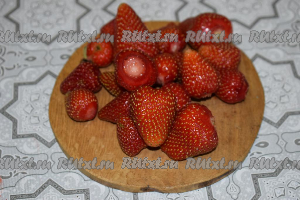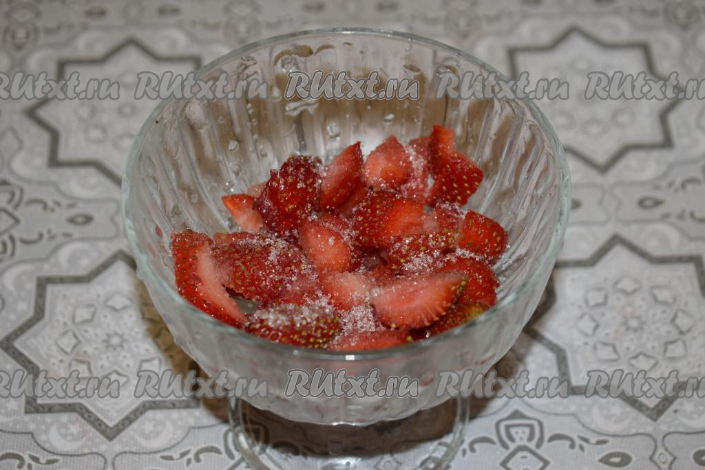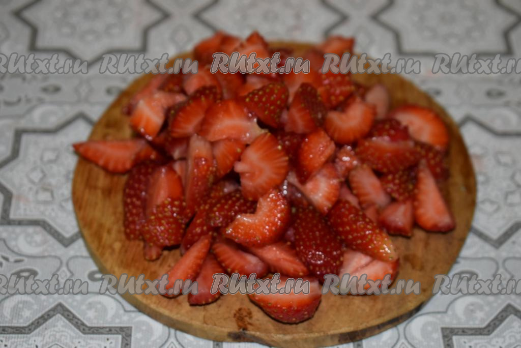 Нарежем клубнику на небольшие кусочки.