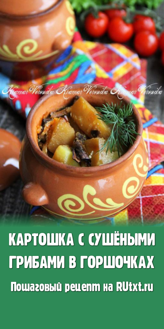 Картошка с сушёными грибами в горшочках