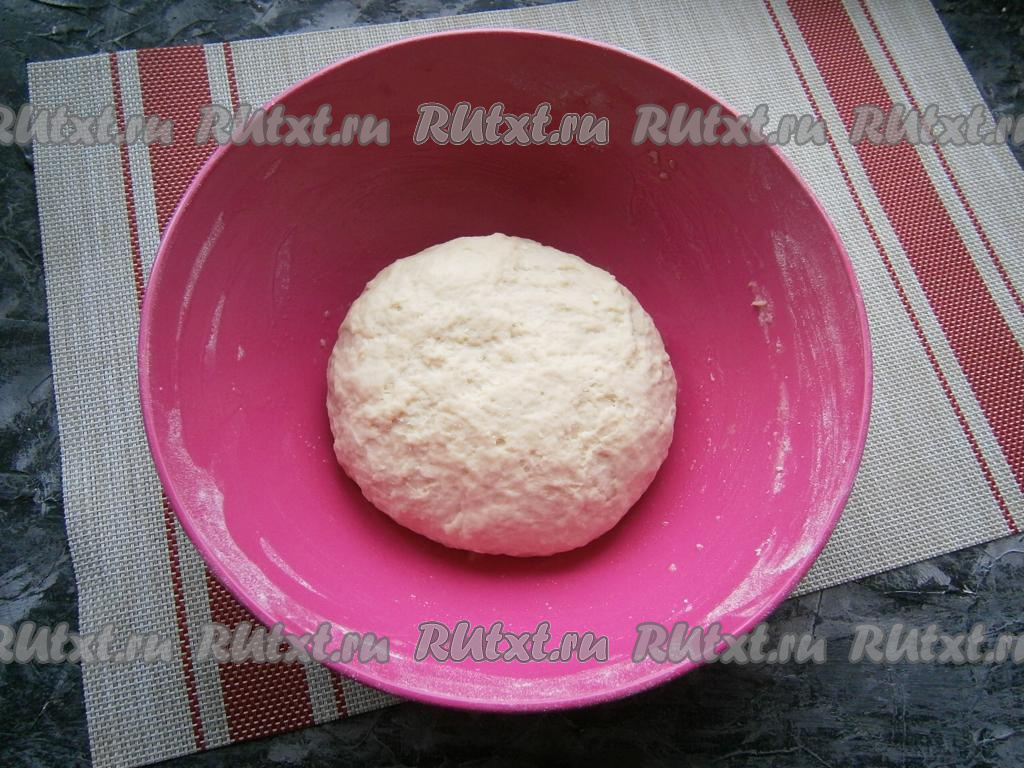 Замесить гладкое, плотное, не липнущее тесто, накрыть его пищевой плёнкой и оставить в тепле на 1 час.