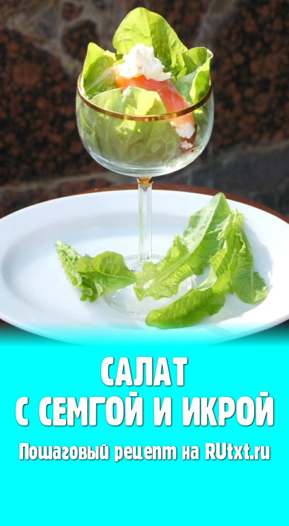 Для украшения положить кусочек семги и сверху добавить немного маскарпоне. Наш салат с семгой и икрой готов.