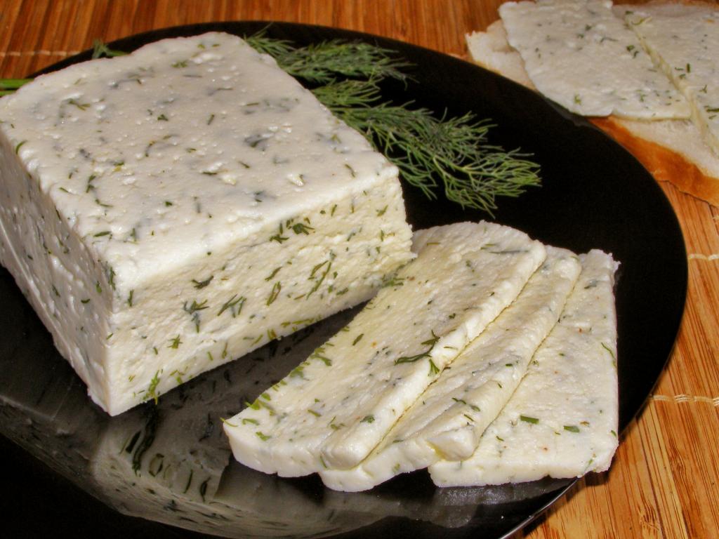 Достаём готовый сыр из лоточка, нарезаем и подаём к столу. Посмотрите, каким аппетитным получился сыр из кефира и яиц, приготовленный в домашних условиях!
